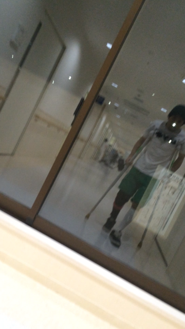 骨もついてないし、膝の靭帯も外側しか無い。ロボットみたいな装具をつけてる。松葉杖もついている、けど歩いた。